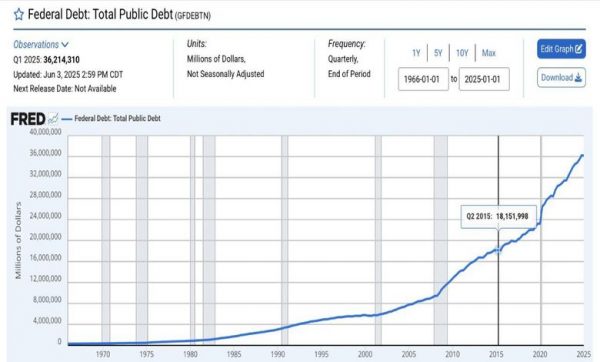 افزایش بدهی ملی آمریکا: بدهی ایالات متحده از مرز ۳۶ تریلیون دلار عبور کرده که نیمی از آن در ۵ سال اخیر اضافه شده است.
