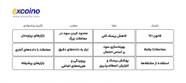 جدول مقایسه تکنیکهای مدیریت پوزیشن