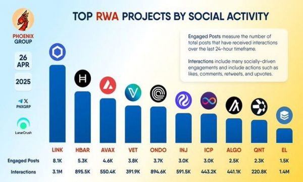 گزارش Phoenix Group و LunarCrush نشان میدهد که فضای پروژههای RWA به شدت پویا شده است. با این حال، Chainlink با اختلافی قابل توجه بر قلهی تعاملات اجتماعی ایستاد.